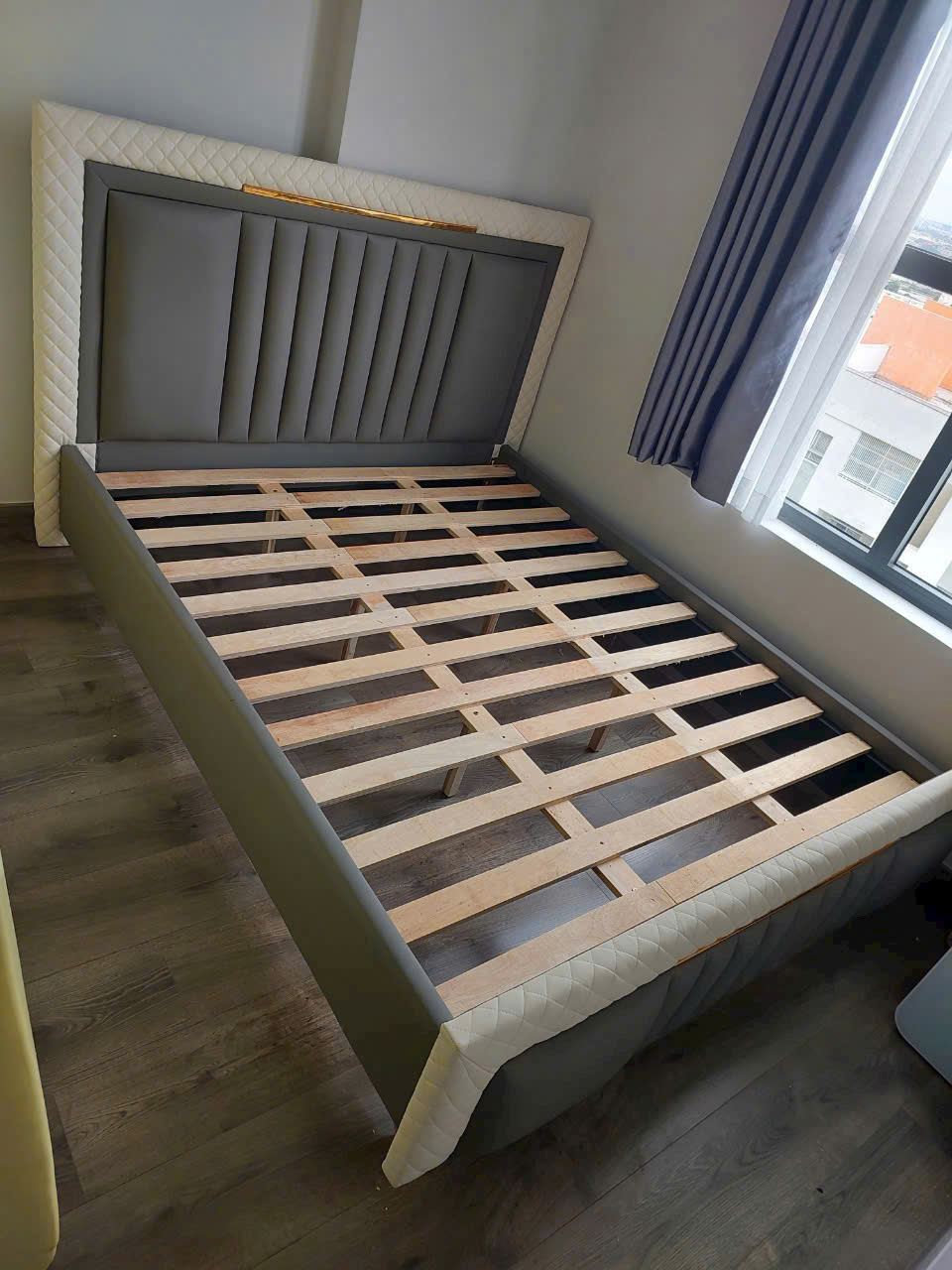 Với giường đôi này, bạn có thể tận hưởng không gian ngủ tối giản và hiện đại mà không cần phải tốn quá nhiều diện tích. Với chất liệu da thật và thiết kế đẹp mắt, giường đôi này chắc chắn sẽ là một điểm nhấn nổi bật trong căn phòng ngủ của bạn.